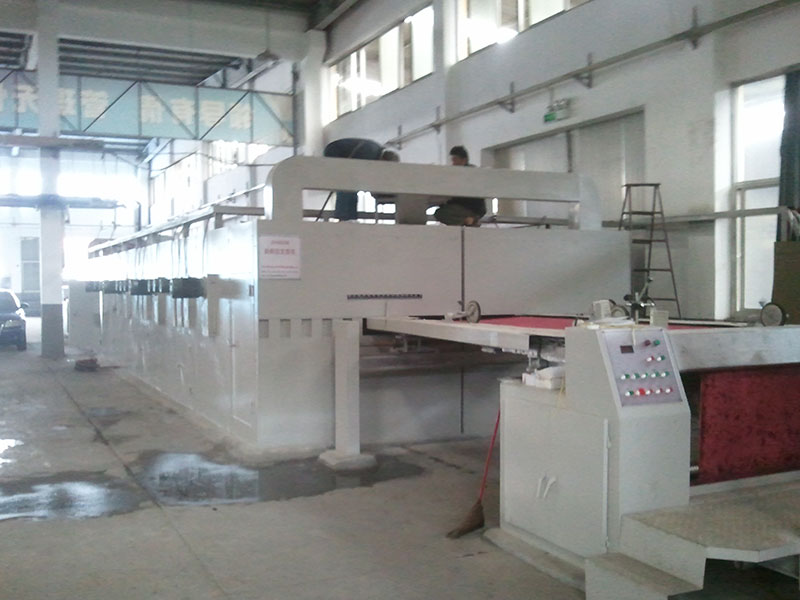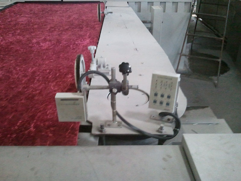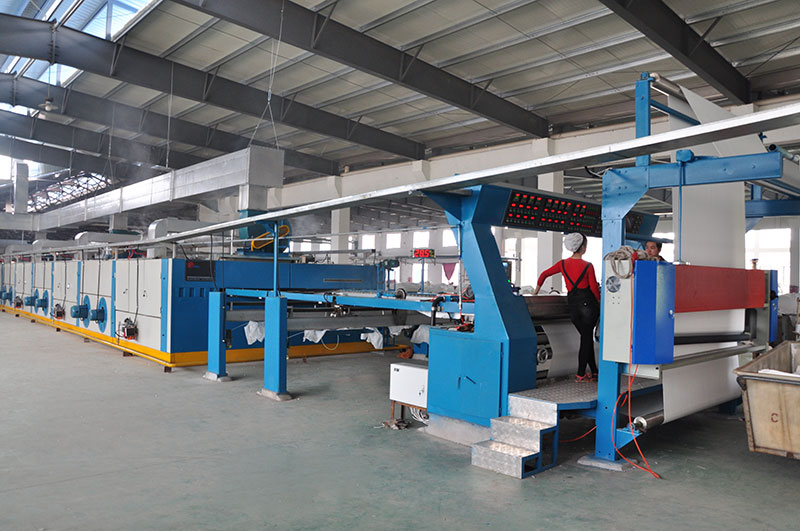 工藝流程:平幅進(jìn)布 → 緊布架 → 上漿 → 軋干 → 上針 →拉幅烘干 → 刷絨 → 脫針 → 落布 |